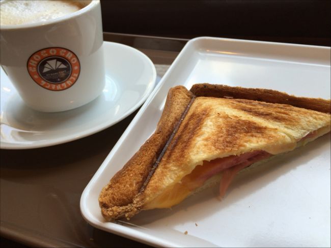 ホットサンド サンマルクカフェ 恵比寿駅前店 Non 2015年06月01日 09:30 ホットサンドがあることに気づきサンマルクで朝食。 焼きたてのタイミングならベストなんだけど、ちょっと温かいくらい。 モーニングセットでカフェラテ(+210円)と一緒に。