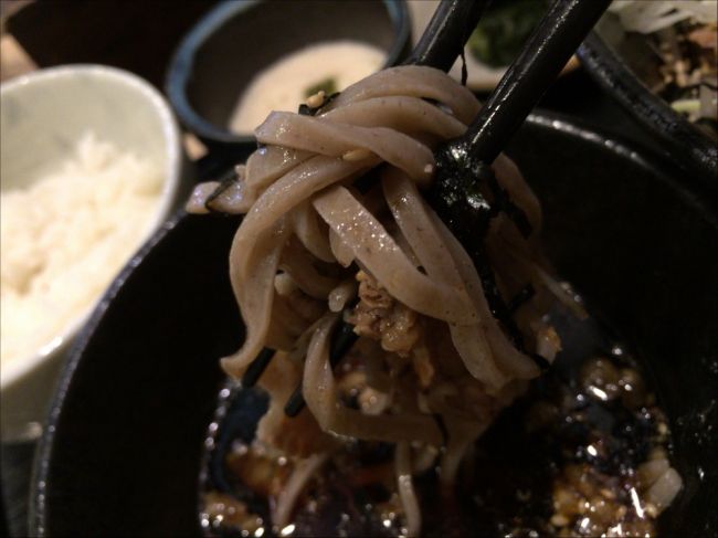 EBISU肉そば EBISU蓮 Non 2015年07月07日 14:51 飲んだ後の二次会で、〆のそばを食べるためによく利用してるEBISU蓮にランチで来店。 ランチでも夜いつも食べてる肉そばがあったので、他のメニューも惹かれたが、まずは肉そばをレポート。 甘いつけダレに、お好みで5種類ある薬味をトッピングして、ちょっと太めのコシのあるそばと肉をがっつりとっていただく。 生卵も無料で置いてあるので、溶いてつけダレにいれるとすき焼き風の味わいが楽しめる。 そばだけで結構お腹いっぱいになるが、ボリュームが物足りない人は、+300円でカレーご飯やとろろご飯もつけれるので合わせて注文しよう。