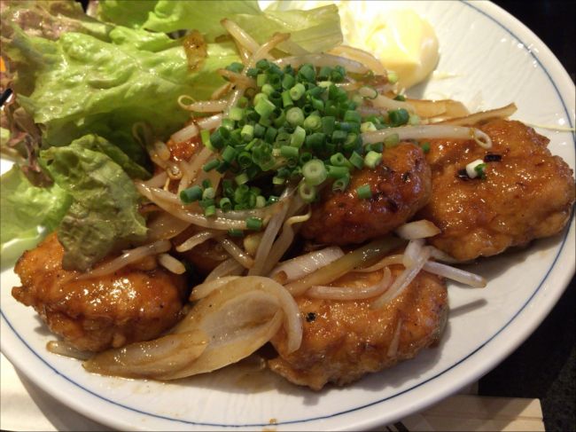 つくねの照り焼き定食 ほの字 恵比寿店 Non 2015年09月03日 14:47 前回、ほの字に来たときに、となりの人が食べてたつくねの照り焼き定食にチャレンジ。 いわゆる串焼のつくねの3つ分くらいのサイズのものが、5つも入ってる。 つくねの身はふっくら柔らかい。 照り焼きソースにマヨネーズを混ぜると一段とうまい。 今日の味噌汁は、ラッキーなことに渡り蟹(^^)