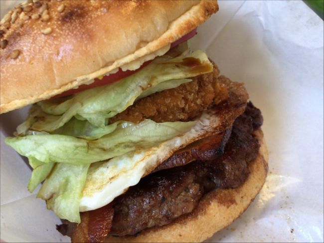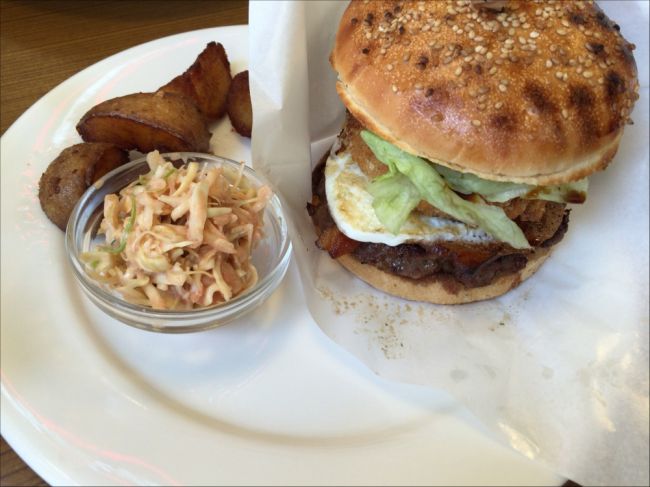 照り焼きバーガー ベーカーバウンス 三軒茶屋本店 Non 2015年04月18日 15:33 トマト、レタス、オニオンフライ、卵、自家製ベーコンにパテとボリューミーかつ色々な味がミックスしてうまい。 テリヤキソースが強すぎずいい感じ。