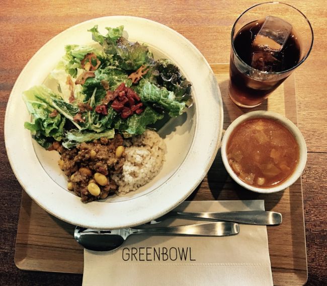 大豆キーマカレーとドライトマトのグリーンボウル GREENBOWL 恵比寿店 Natsumi Yokoyama 2017年03月07日 22:20 恵比寿ガーデンプレイスから徒歩3分ほどの新しくて綺麗な建物の中にありました。 + ¥150で3種類のスープが選べたので野菜と豚肉のスパイシートマトスープも注文。 ひとつのお皿で新鮮な野菜、噛み応えのある玄米がバランスよく摂取できる一品です。 大豆がコロコロ入っていてピリ辛キーマカレーとドライトマトとの風味がよく混ざっていました。 ただ、一つ一つ丁寧にサラダを盛り付けているからか待ち時間が20分程ありました。 時間がある時に行くのをオススメします!
