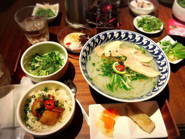 選べるフォーとベトナムご飯セット ベトナミーズ・シクロ 六本木 Natsuko Mizoguchi 2017年04月28日 18:30 六本木駅から徒歩3分のベトナム料理店の「ベトナミーズ・シクロ」に行ってきました。 ランチセット(1,280円)はフォー+ライス(ハーフサイズ)+サラダが付いてきます。 そしてドリンクのお水(レモングラス、パクチー、ライム)、フォーにトッピングするお野菜、デザートはセルフ式で、コーナーに取りにいく形です。 私は蒸し鶏のフォーと角煮ご飯を注文♪ フォーは薄味なのですごく食べやすいし、おいしい!!が、結構な量があるので、女性には少し多いかもかもしれないですが、ハーフサイズのご飯も食べやすくて病み付きになりそうですw デザートも自分で好きなようにトッピングをし、最後にはベトナムコーヒーも追加してまったりしました☆ 女性が好きなお店です^^ 少し残念ポイント☆セルフコーナーのすぐ隣には食べ終わったお皿などが置かれていました(店内は広々としていたのですが、他に置き場所ないのかな?)