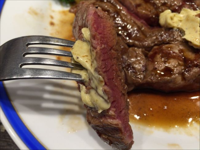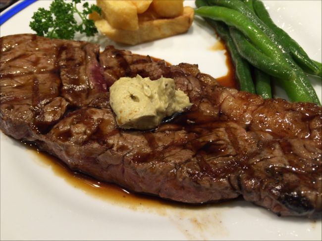 厚切りサーロインステーキセットA(220g) ステーキの神様 ル・モンド Non 2015年05月11日 20:42 ステーキの神様と自ら唄うル・モンドでサーロインステーキをいただきました。 上質な柔らかいお肉に自家製の醤油ベースのソースと香草の効いたバターの味わいは格別です。 接客のお姉さんの笑顔も格別ですw