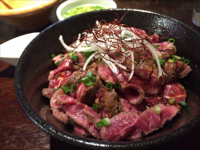 Non 2016年12月15日 21:19 恵比寿東口から徒歩5分くらいの路地裏にある「89BAL(ヤクバル)」。 肉師が厳選した黒毛和牛のたたき丼の肉大盛りバージョン。 肉はさっと炙った感じでかなりレアな仕上がり。 ちょっと厚めに切って...