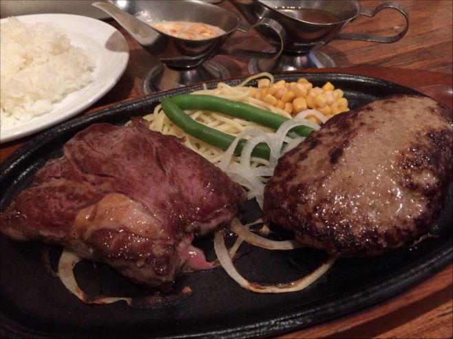Non 2017年01月10日 14:56 恵比寿駅前にの地下にあるステーキハウス「モンスターグリル」でランチ。 1度に2度楽しめるステーキとハンバーグのコンボを注文。 ステーキもハンバーグもかなりのボリューム。 ステーキは若干筋があるが...