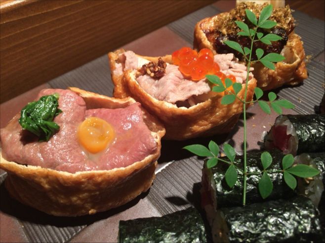 Non 2017年02月08日 08:42 2016年11月恵比寿にオープンしたイワカムツカリの姉妹店「あげまき」。 恵比寿と代官山の中間あたりにあり、恵比寿西口から徒歩6分くらいが。 独創的ないなり寿司、巻き寿司をはじめ、本格的なお寿司を...