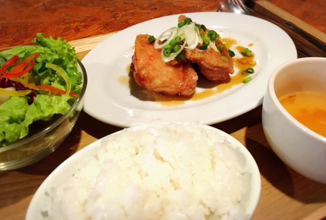 Kasumi Matsuzaka 2017年03月25日 18:18 「地中海バル LIBRE」へランチで行ってきました。 注文したのは「油淋鶏 若鶏の唐揚げ 長ネギの甘酢ソース」 大きめの唐揚げが2つ、カリッと揚げられた衣に甘酢ソースが絡んでいてご飯によく...