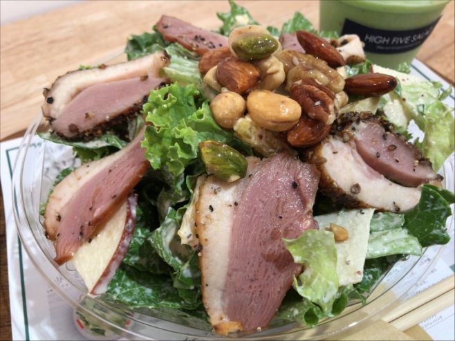 Non 2017年05月06日 14:19 ダイエット中のため奥神楽坂エリアにあるサラダ専門店「HIGH FIVE SALAD 奥神楽坂店(ハイ ファイブ サラダ)」でランチ。 新しいメニューの合鴨の燻製サラダを注文。 6種類から選べるドレ...