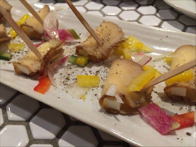 いぶりがっこの燻製風味とクリームチーズがよく合う。