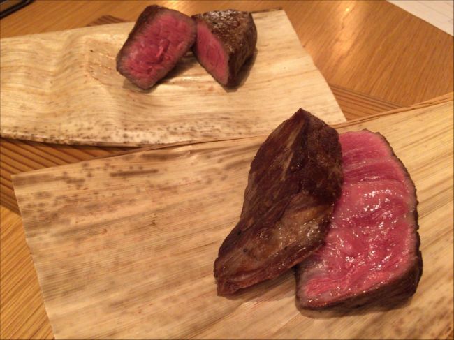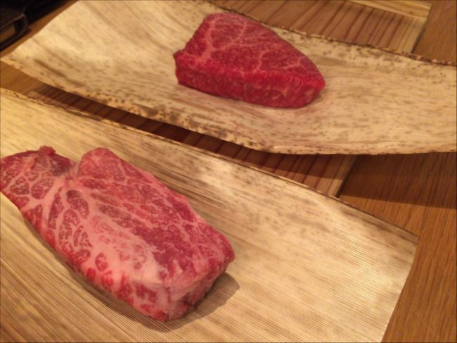Non 2015年05月21日 22:43 大人なので、脂身の少ないウチモモ(奥)2200円/100gとイチボ赤身(手前)2200円/100gを150gずつオーダーw メンズ2人でも他のメニューもいくつか注文して、これくらいの量が丁度良い感じ...