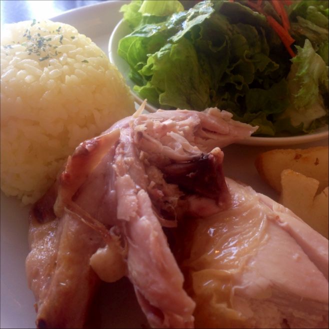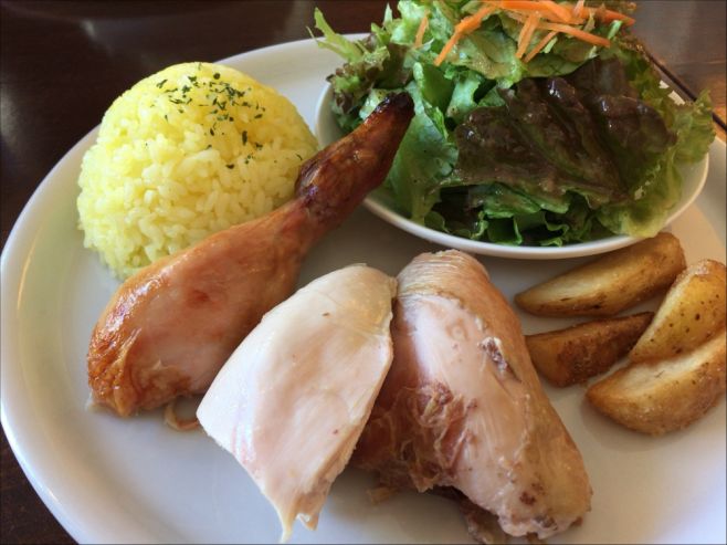 Sayaka Kinoshita 2015年05月14日 14:37 ふっくらとした鶏肉が美味しいロティサリーチキンのお店。 プレートにサラダ、チキン、ご飯が乗っていて、コンソメスープもついてきます。 チキンがボリューミーに見えるけど、ご飯の量が少なめでサラダも適量...