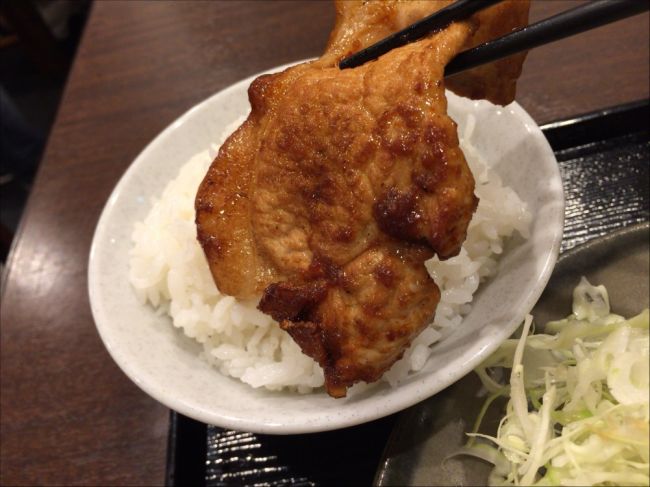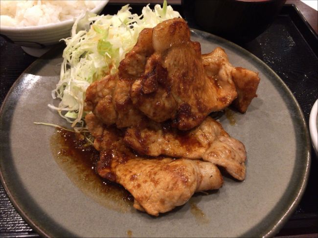 Non 2015年05月26日 21:26 普通の生姜焼き(細切れ肉)とこちらの一切れが大きいロース生姜焼きがあるみたい。 一枚が大きい肉なので味がつきにくいからなのか、醤油味が強く、ちょっとしょっぱい感じもあるが、柔らかく食べ応えのある豚肉...