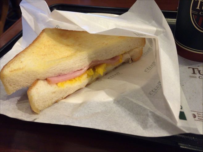 Non 2015年05月27日 09:28 出来合いのものですが、トーストして熱々に仕上げてくれたので満足。 モーニングのドリンクセットで、+30円でカフェラテに、さらに+50円でトールサイズにできることを知るw