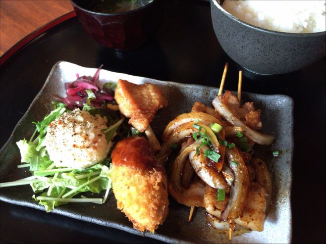Non 2015年05月28日 14:00 ミーティングが控えてたので、職場から一番近いところで済まそうと期待しないで食べてみたら、意外と悪くないメニューw 豚バラ肉の照焼 山椒風味、メンチカツ、とりの唐揚げという、居酒屋の料理を盛り合わせた...
