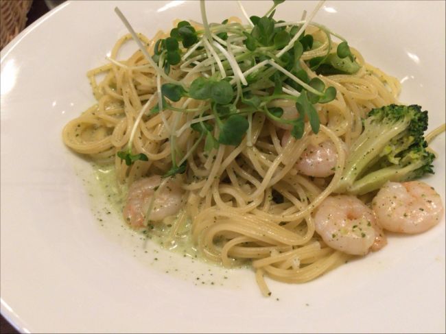 Non 2015年05月29日 14:52 ビュッフェ付きランチで、パスタはジェノベーゼクリーム。 パスタのボリュームがそこそこありながら、サラダビュッフェで二回お代わりしたので、かなり満腹w ジェノベーゼソースとクリームは良く合う。