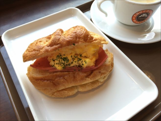 Non 2015年06月02日 09:31 クロワッサンのタマゴとハムサンド。 サンドイッチだから焼きたてじゃなくていいけど、しっとりし過ぎてる(わざとやのかもしれんがw)のでクロワッサンにもうひと工夫ほしいところ。