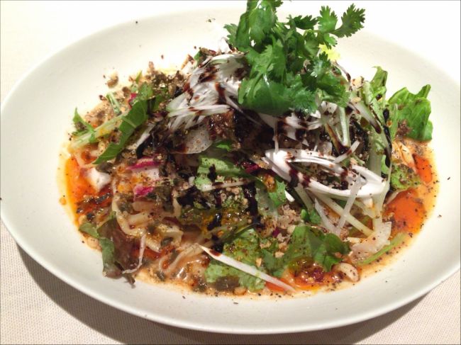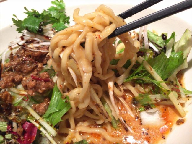 Non 2015年06月05日 14:59 夏限定の冷やし担々麺。 口に入れたときはピリッとくるくらいでそんなに辛くないと思ってたら、後からジワジワ汗が。 味は濃すぎず薄すぎずバランスのとれた上品な感じで、パクチーがいいアクセントに。
