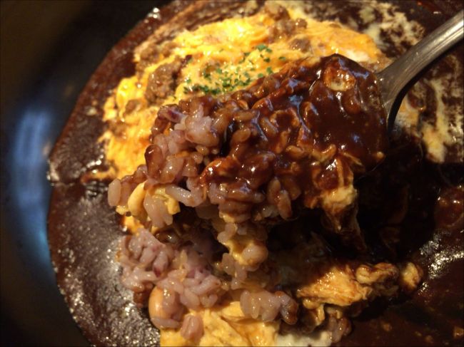Non 2015年06月09日 16:47 トロトロ半熟卵に濃厚でコクのあるカレーで、「カレーは飲み物。」の黒カレーに似てる。 ライスは白飯と五穀米を選べたので五穀米に。 美味しいけども、カレーなんでサラダとドリンクがついて1000円にして...