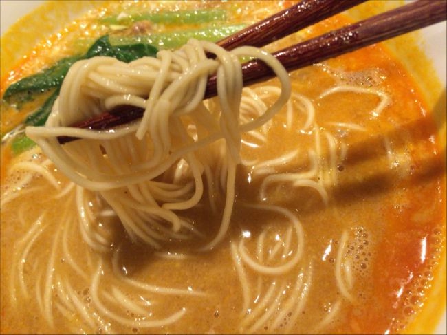 Non 2015年07月03日 14:29 細麺でサラッとしたスープに大量のゴマが入った担々麺。 いわゆるクリーミータイプではないが、大量のゴマで濃厚なスープに仕上がってる。 あと引かないピリッとした辛さ。 セットの小籠包は3つ入ってて、...