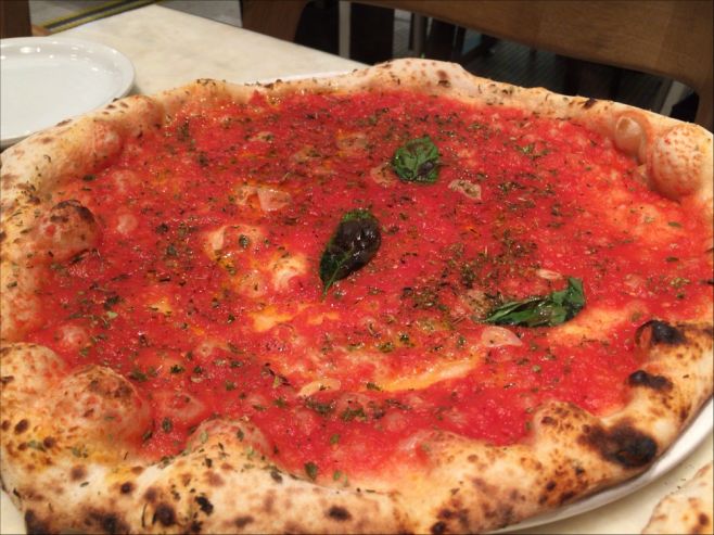 Non 2015年07月08日 15:04 イタリア・ナポリで人気の老舗ピザレストランの支店ダ・ミケーレ。 2種類しかないピッツアのひとつマリナーラの大きいサイズのマキシを注文。 マリナーラは、チーズを使用しないのでマルゲリータよりもシンプ...