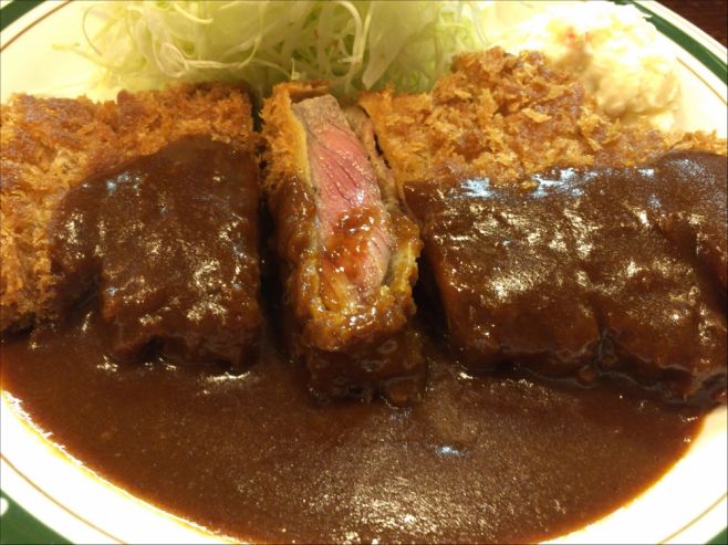 Non 2015年07月23日 22:19 相変わらず入れ替わり立ち替わり客が入ってくる「かつれつ四谷たけだ」の名物ビーフカツレツ定食。 分厚い牛かつにたっぷりデミグラスソースがかけられてる。 ミディアムレアに仕上げた肉はとても柔らかく満足...