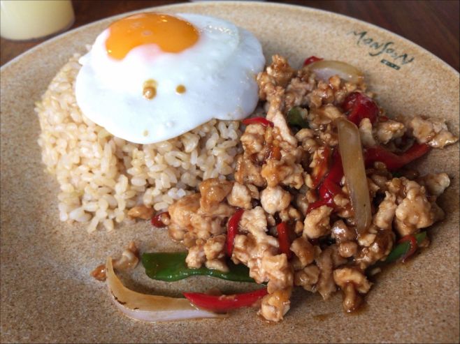 Non 2015年07月28日 18:46 こんな暑い日はエスニックをと、カフェマングローブへ。 タイ料理定番のガパオを注文。 ライスをタイ米と玄米から選べるので、ヘルシーな玄米を選択。 ちょっと辛めで、暑い日でも食欲を掻き立てられる。 ...