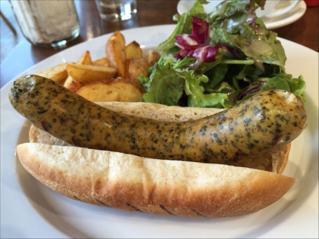 Non 2015年08月08日 15:40 二度目のDEMODE R(デモデアール)三宿店。 チキンベースのソーセージを挟んだポロに挑戦。 ポルトリーケイジャンなるものが入ってると書いてあって、何かと調べたら「バジル、タイム、セボリー等、爽...