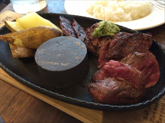 Non 2015年08月11日 13:38 恵比寿西口から左手に坂道を登り切ったところにある一軒家のダイニングバー「山の上バル」のランチ。 数量限定の炭火焼き牛ハラミのステーキを注文。 真ん中にある熱々の鉄の台上で、お好みの焼き加減にして食...