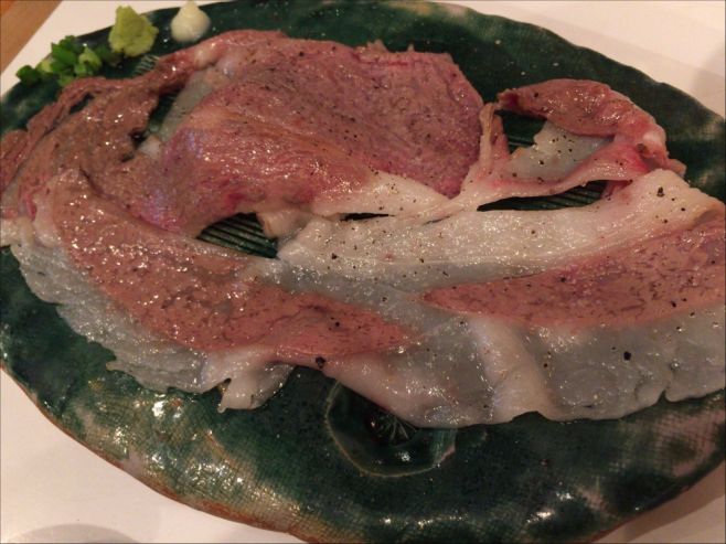 Non 2015年09月16日 23:26 渋谷センター街のちとせ会館2階にある渋谷肉横丁で、肉寿司に入店。 肉寿司に来たからには、名物メニューのさしとろは外せない。 シャリの何倍もある肉のインパクトから、大体みんな注文している。